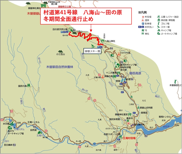 村道第41号線(八海山~田の原間)は、令和7年11月5日(水)から冬期全面通行止めとなります。